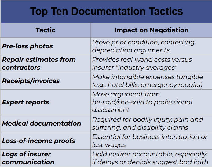 Documentation and Evidence: The Currency of Insurance Negotiation Explanation: