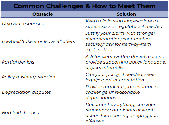 Seek expert help when stakes are high: Bring in public adjusters or attorneys as needed—don’t go it alone against a well-resourced company.